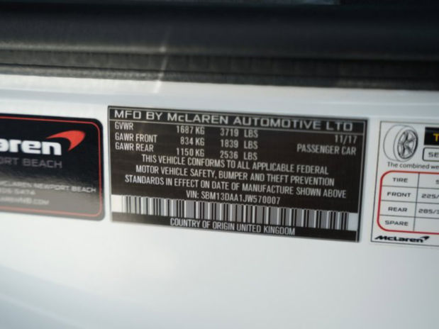 McLaren San Diego is proud to present for sale this stunning Certified 1 of 10 2018 McLaren 570S MSO X as part of our hand-selected pre-owned lineup. This gorgeous example is finished in White exterior paint (Protected by full PPF) and Black Nappa Sport Alcantara interior with P1 Bucket Seats.Other manufacturer options include:-McLaren Track Telemetry-P1 Seats in Touring Size-Carbon Fiber Interior Upgrade-Front and Rear Parking Sensors-Rear Parking Camera-Front Lift-CCB's with Polished Calipers-Dan Kang 8 Specification10 unique McLaren sportscars that emulate the look and feel of a McLaren 570S GT4 race car but are fully road-legal have today been delivered to their new owners at a special McLaren customer event near Las Vegas, USA. Commissioned as an MSO Bespoke project the service from McLaren Special Operations (MSO) that allows almost limitless enhancement and personalisation of McLaren cars the 10 MSO X cars were ordered by the US markets.Designed to mirror the external appearance of the McLaren 570S GT4 race car as closely as possible, the MSO X cars are deliberately finished in accordance with race car design practice and all have liveries inspired by McLaren F1 GTR endurance race cars of the mid-1990s.The revised design of the MSO X cars optimises circuit aerodynamic efficiency, with each car featuring a 570S GT4-inspired, pylon-mounted rear wing that provides approaching 100kg of extra downforce. A fully functional goose neck carbon fibre roof snorkel for enhanced induction airflow, inspired by the 1997 F1 GTR Longtail, additionally delivers a unique cockpit sound. The transformation is completed by the inclusion of front dive planes, an MSO Titanium Super Sports Exhaust, Pirelli P ZERO CORSA tyres and a 570S GT4-style bonnet with specially constructed air intakes that work in conjunction with the roof snorkel and rear wing as a complete MSO aerodynamic package. Extensive use of satin finish carbon fibre across the entire bodywork, including roof, bonnet, side skirts and engine cover, as well as a unique rear bumper with cut-outs, helps to reduce weight.The MSO X collection is the perfect example of the rich vein of bespoke service offered by McLaren Special Operations. Customers come to us with their thoughts and ideas and MSO works with them to set boundaries within which they can then let their imaginations run wild.The interior of each MSO X car features a track-oriented, minimalist design and is visibly different to any other McLaren Sports Series road car. The carbon fibre Monocell 2 chassis is deliberately exposed, complementing carbon shell bucket seats, exposed carbon fibre sill panels and a bespoke carbon fibre bulkhead that features stowage space for a race helmet. The centre tunnel storage bin has been removed to save weight and the raised, carbon fibre centre console that features in the 570S GT4 further accentuates the racing intent. The MSO X cars are also equipped with a colour matched harness bar to hold the 6-point racing harnesses for track driving (in addition to regular three point belts) and McLaren Track Telemetry with a full suite of cameras.Befitting the fact that the MSO X cars are designed to be driven on the road to reach a track, McLarens reputation for road car usability is at least partially retained, with parking sensors, rear view cameras, vehicle lift and race air conditioning on all the vehicles.The MSO X commission progressed from an initial design discussion to all 10 examples being sold and delivered in just eight months.